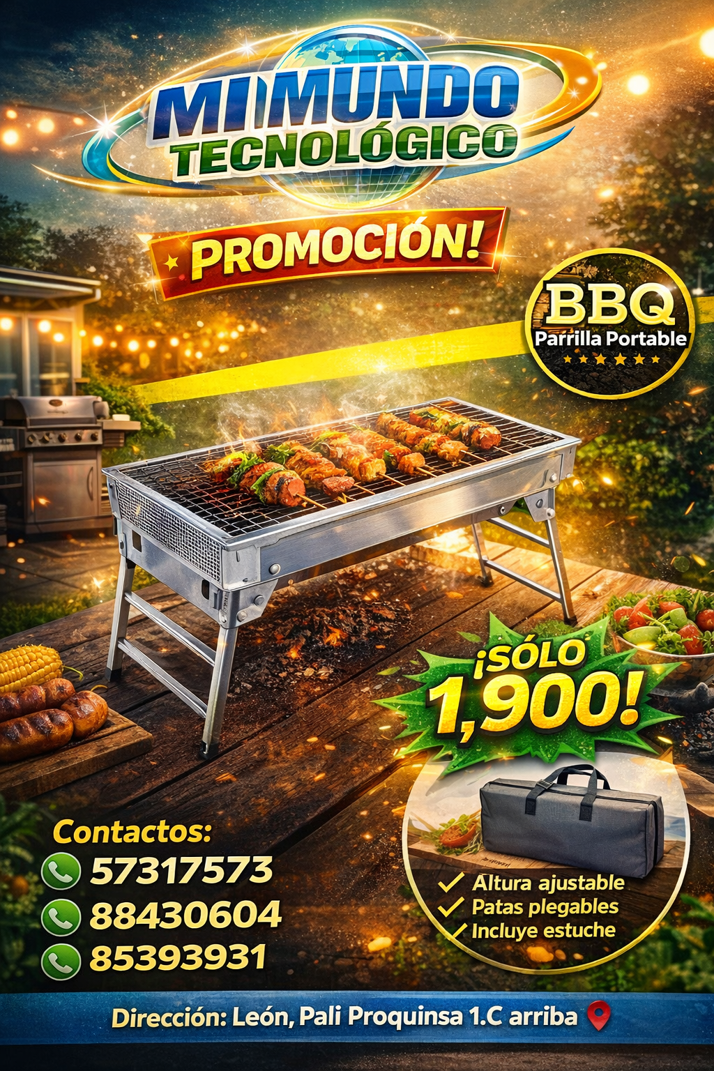 🔥 Características Principales – Parrilla Portátil BBQ 🧱 1️⃣ Estructura metálica resistente •Fabricada en acero resistente al calor. •Soporta altas temperaturas sin deformarse. 📏 2️⃣ Tamaño compacto y práctico •Ideal para patios, terrazas y exteriores. •No ocupa mucho espacio. 🔄 3️⃣ Patas plegables •Se pliega fácilmente para guardar o transportar. •Ahorra espacio cuando no se […]
